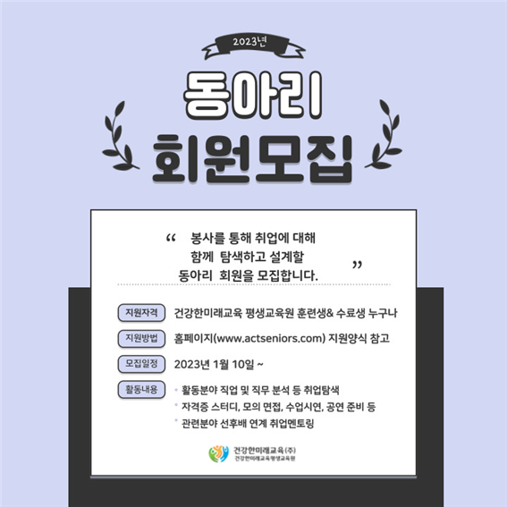 [구인공고] 지역사회서비스(치매예방 뇌에기가팍팍) 제공인력 채용